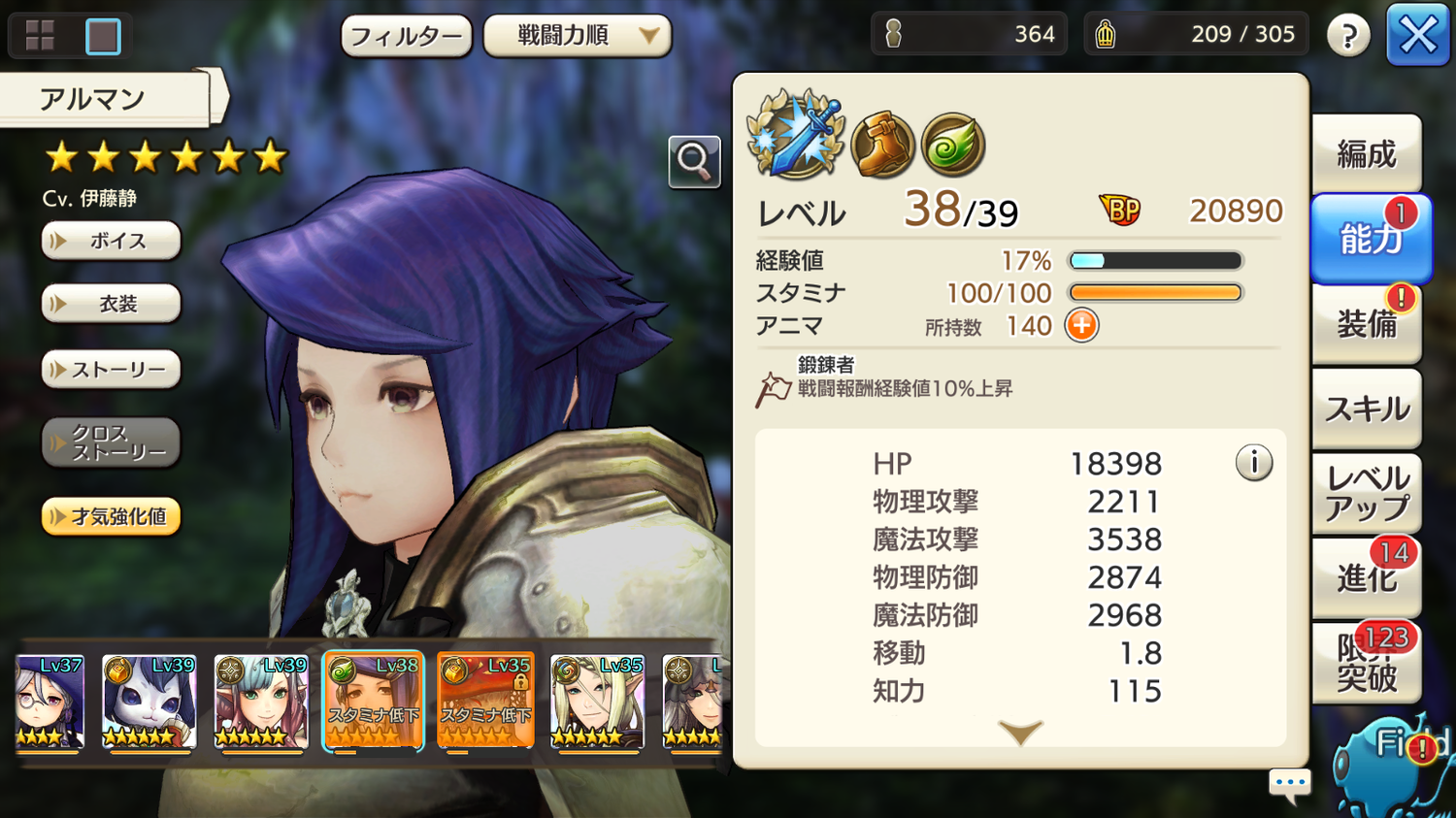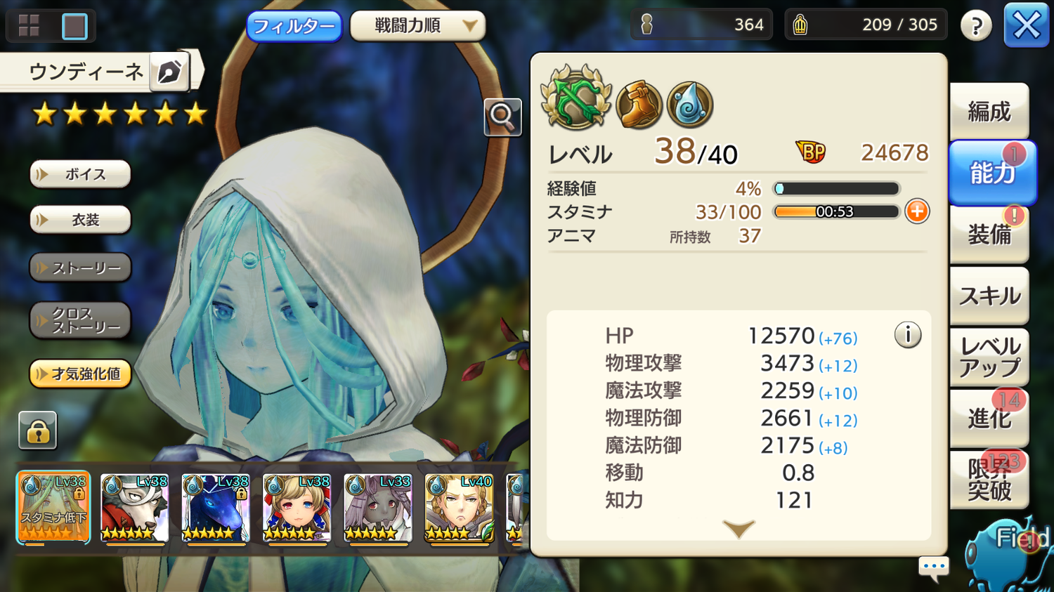 で、気がつくと水属性キャラBP一位がウンディーネさんに・・・