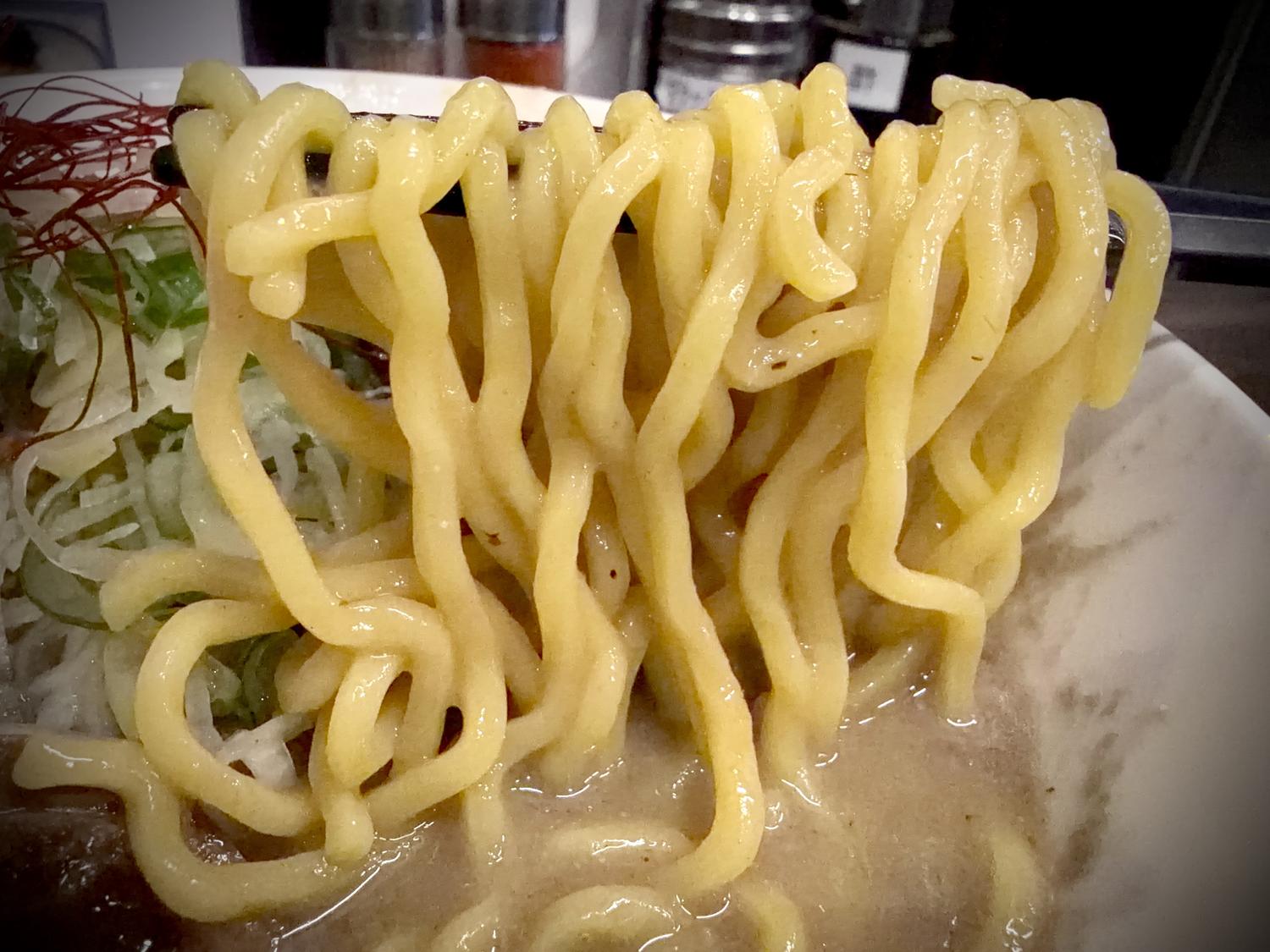 麺は中太ちぢれ…
