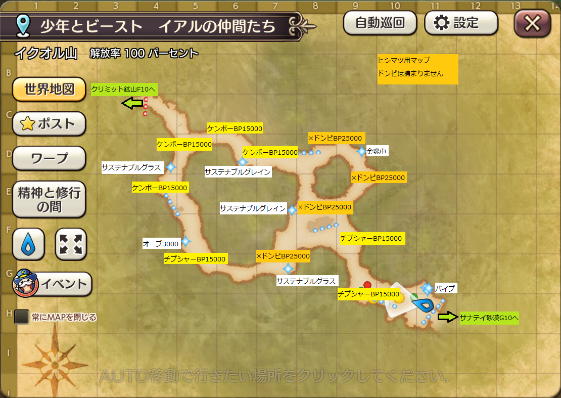 2023/11/04 15:38 公開 ヒシマツ用ビーストマップ(イクオル山/クリミット鉱山/ゴール海岸) スクリーンショット ノーザについても未確認ですが、フーザと同じ扱いということで(∀`*ゞ)エヘヘ シャサ リンクをコピーしました 前の旅日誌 旅日誌一覧 次の旅日誌 コメント 1 寿璃 ID: w5v378hz7v69 何時もマップありがとう御座いますm(_ _)m 2023/11/04 16:56 2 くろさま ID: 2fse7gw3qy4x ヒシマツルートでノーザ夜間確認してるのでこれで大丈夫です。 2023/11/04 21:42 3 シャサ ID: ahizt6avf7fz >> 1 ご愛用いただいてたんですね(≧▽≦)こちらこそ、見てくださってありがとうございます! 2023/11/04 23:21 4 シャサ ID: ahizt6avf7fz >> 2 おおお!貴重な情報ありがとうございます!すごく安心できました(*´▽`*) 2023/11/04 23:22