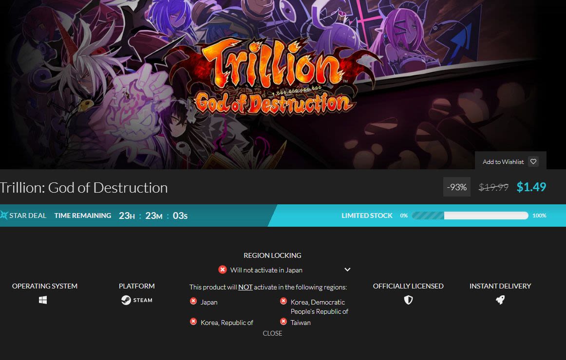 なんか日本一のインフレゲーっぽいSRPGが爆安でとびつきたかったのですが、よーくみたら「おま国」タイトルでした(買っても通常は有効化・・・プレイ不可)。日本人なめんなー!!おま語は気にしないのですが、起動できないのは堪えます・・・SEGAとかセガとか湯川専務とかな!!!