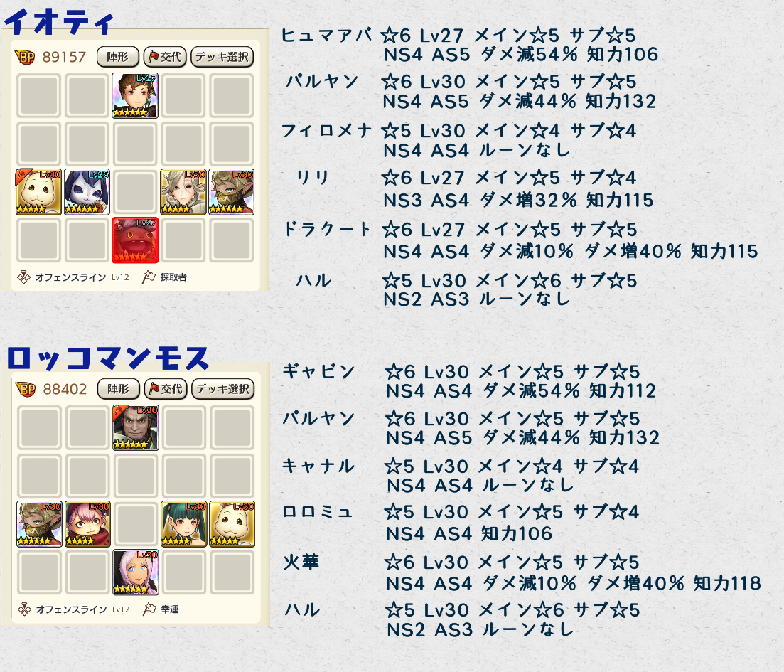 パルヤンとフィロメナはヒュマアバ、ハルは物理攻撃アップがかからないリリを
