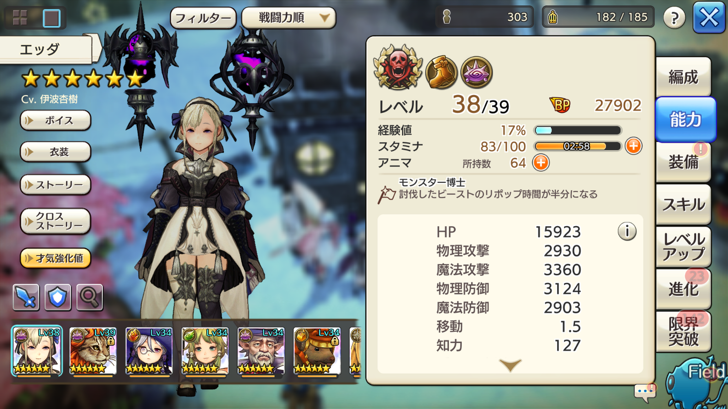 んでもってうっかりできた失敗の中でもちょっと面白そうと思うキャラなら装備させて育ててってやってたら、エッダ用の☆6装備3本がなかなか貯まらないったらありゃしない。
