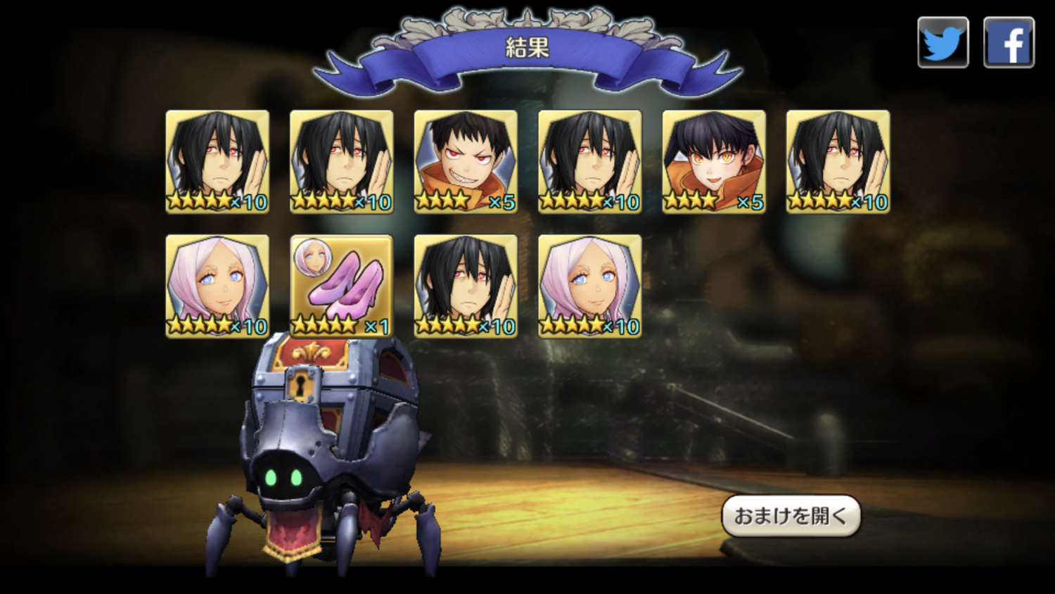 2020/08/12 09:20 公開 ガチャ爆死 雑日誌 運命の箱 すでにもう何度か回してますが、今回はさらに6回回してみました。プリンセス欲しかったのですが直引きできず(´xωx`)紅丸ステップアップでゲットしましたが要らん!! kenpuu リンクをコピーしました 前の旅日誌 旅日誌一覧 次の旅日誌 コメント 1 ヤマト ID: a5hycxga6zpd ☆5直引きなんてそうそうないですよ。自分なんてもうルヴレ以降出てませんよ 2020/08/12 11:09