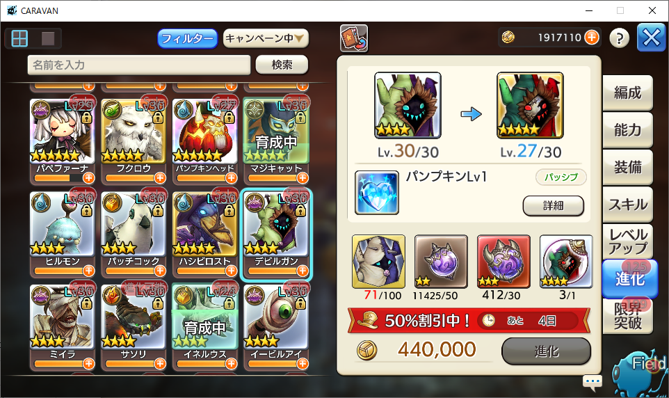 デビルガン☆5にしましたが、放置狩りに向かないですね。
