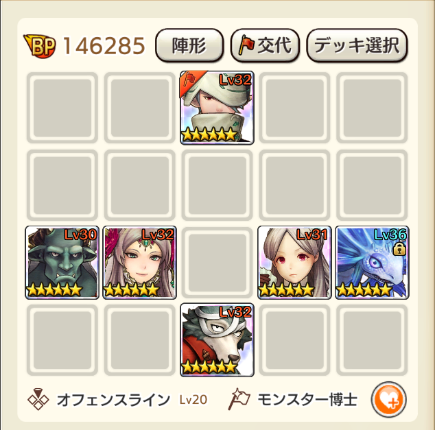 今のうちの子たちで水PT組むとこんな感じって画像を追加しましたが、うちだと水の火力はレゴシとジリアンがいて、あと遠くから凍らせるのに両手6知力151のバラウールがいて、とりあえず水は他の属性よりは強めだったりして。