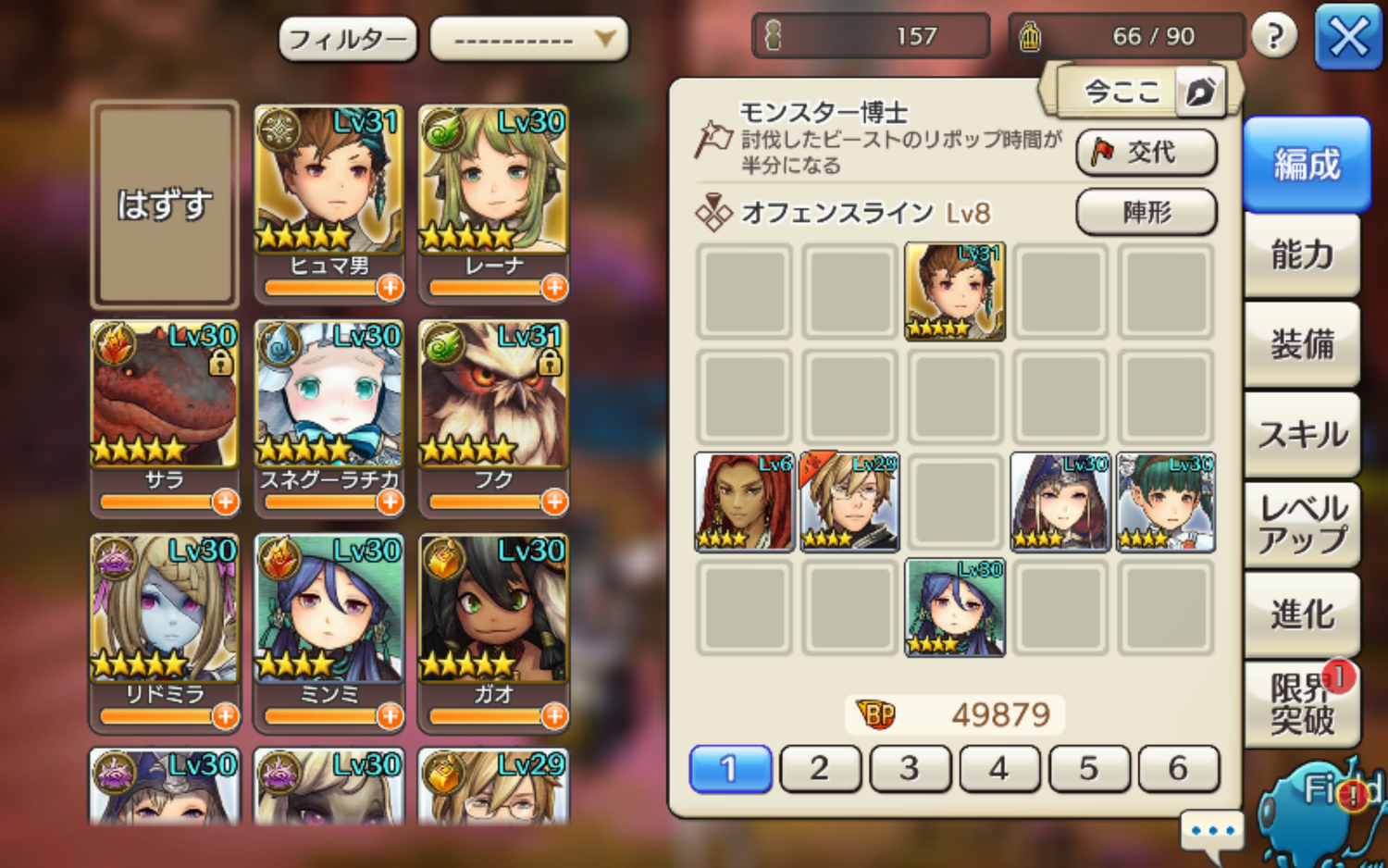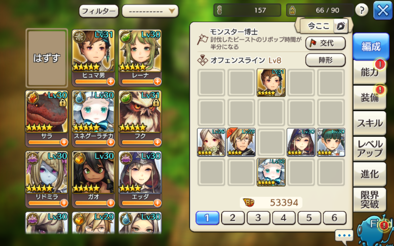 ロディをエッダと水火力に入れ替え。水で全体攻撃で、アルフレッド(魔攻バフ)がいるから魔法