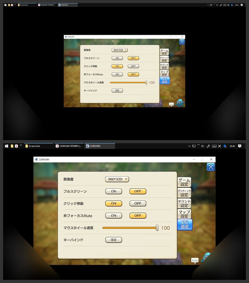 画像は参考に、一時的にディスプレイ解像度だけを変更したものです
