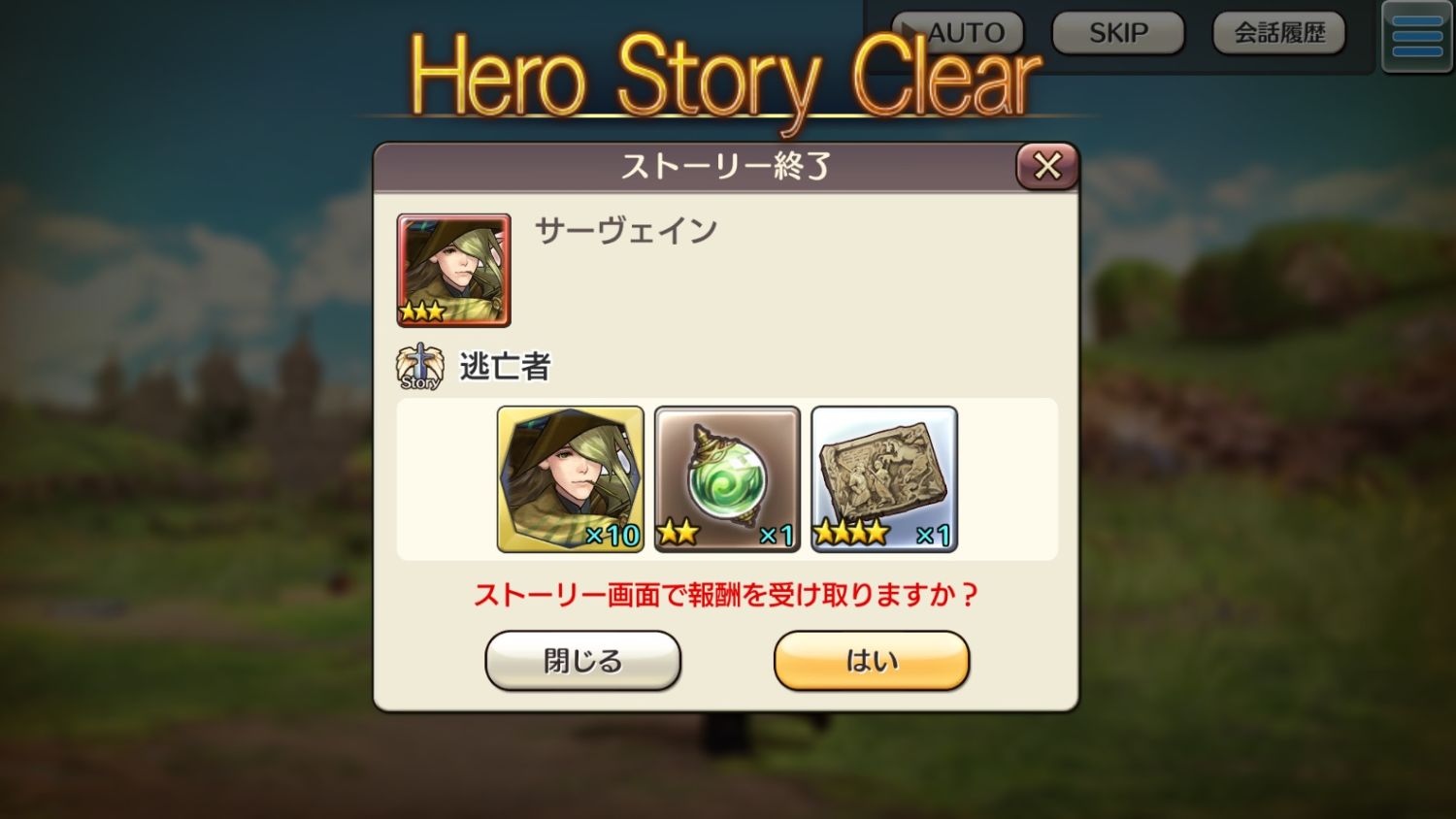 サーヴェインの★5進化クエスト「逃亡者」をクリアしました。敵はヴァルメルの兵士3人(風)にイヌ2匹(光)です。BPは75000。高難易度クエストです。★3のサーヴェインでちょっと難易度高すぎませんかね……。こちらの編成は画像1の通り。