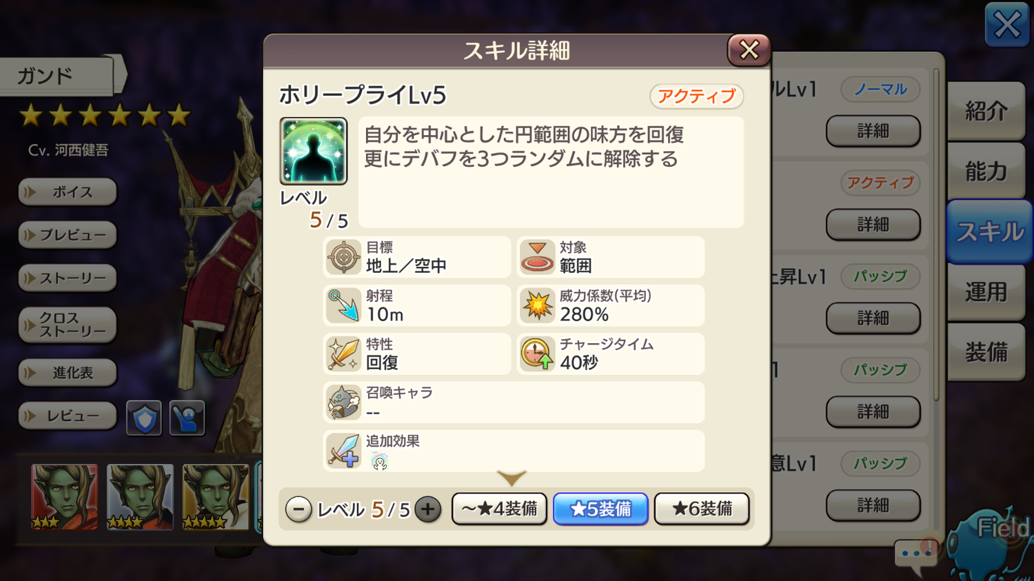 しっかり育成すると自分中心10mの味方のデバフ3個を解除可能になります。