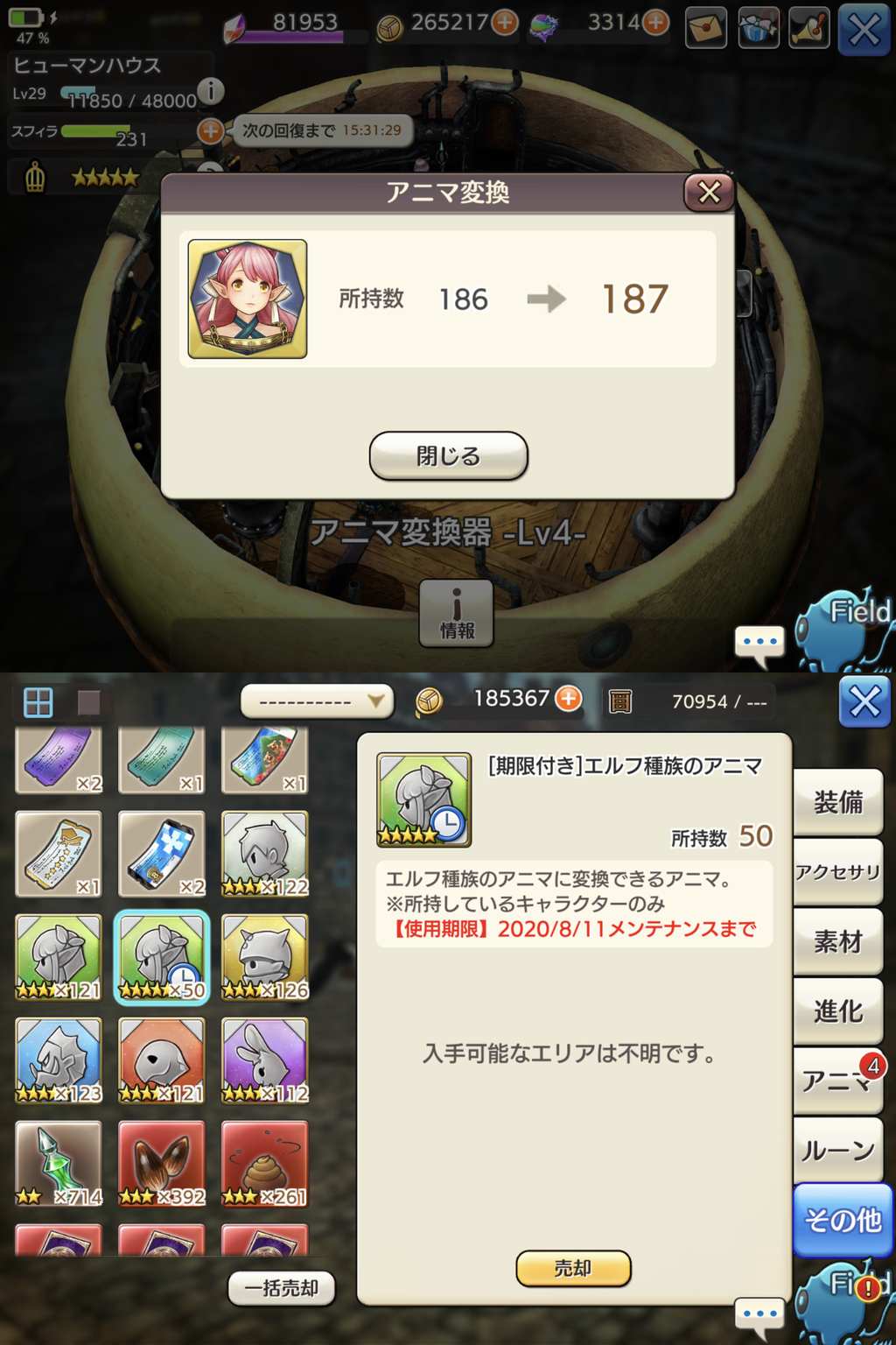 アカリさん解放して、機関限定エルフアニマを積もうと思っていましたが…残念です。