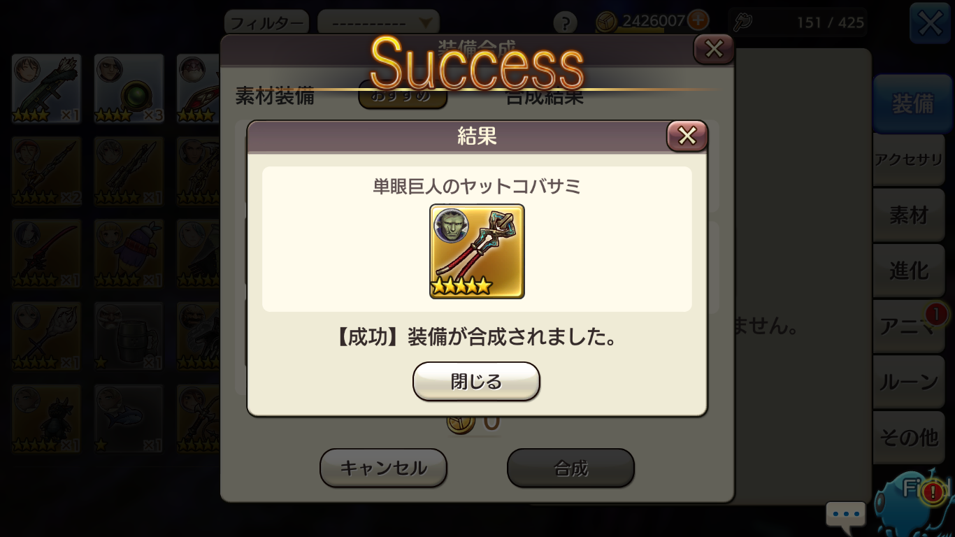 これで連続失敗した分だけ、星6サブ武器合成の成功確率は上がるはず...!!