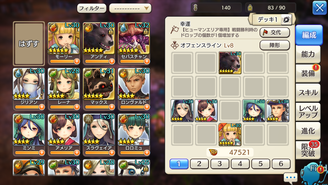陣形:オフェンスラインLv8