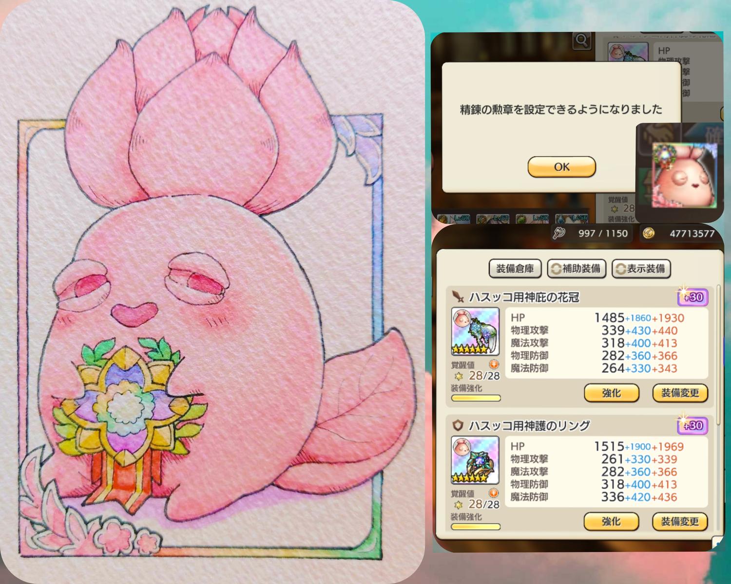 祝☆勲章ハスッコ爆誕おめでとうございまーす!そして素敵なイラスト!ミンミ!かわいい!ぬいぐるみのようなハスッコもかわいい!ありがとうございます!