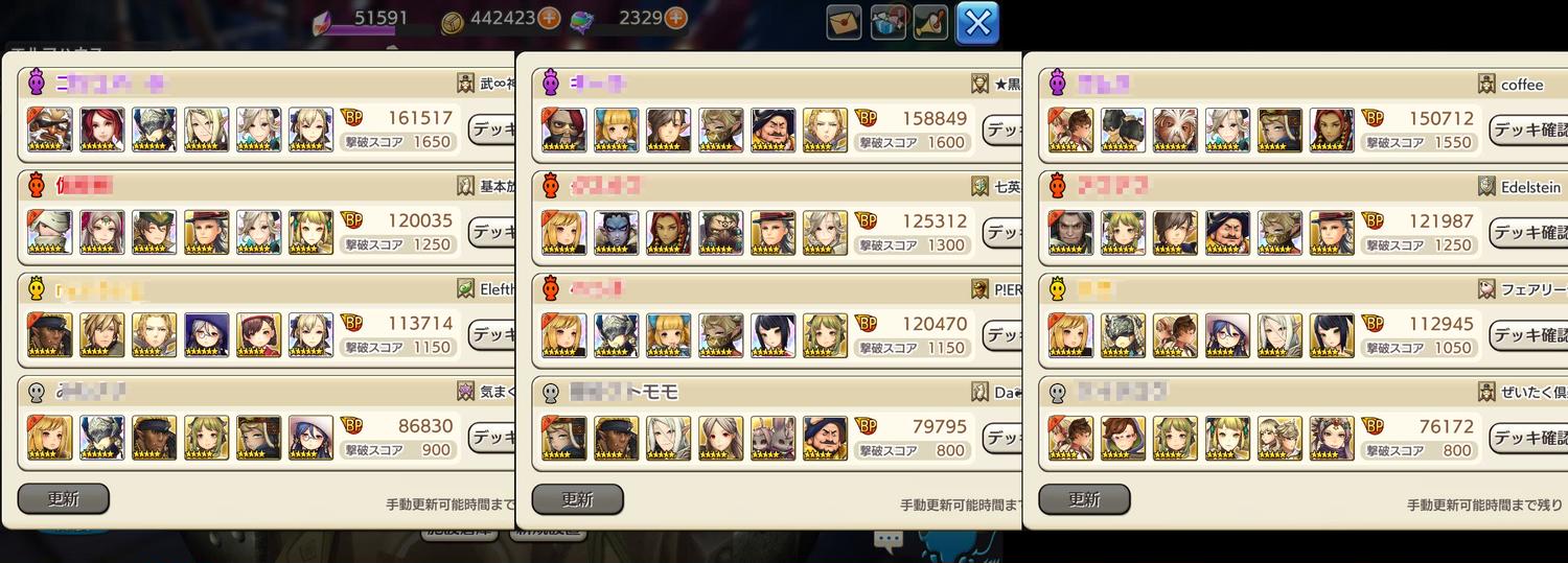 あるいは、☆6高BPのヒーラー/バッファー/タンカー職オンリーで3デッキ組めたら、次シーズンから接待できるのかしら???面白いとおもいまぁす。