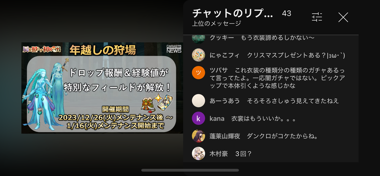 一部でサ終が囁かれるゲーム、キャラストクリスマス配信のコメ欄はなかなか殺伐としてて個人的に面白かったw
