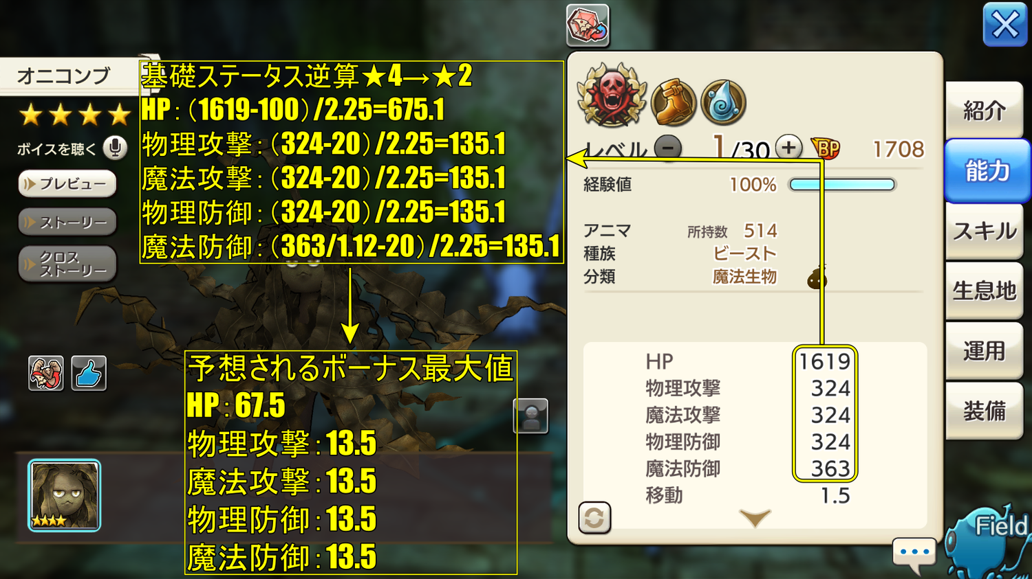 素体は★4です。ボーナス値はいつもの通り図鑑の数値から逆算して予想しました。