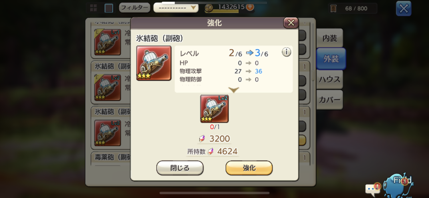 Eマークがついていない(装備していない)LV2氷結砲で強化すると
