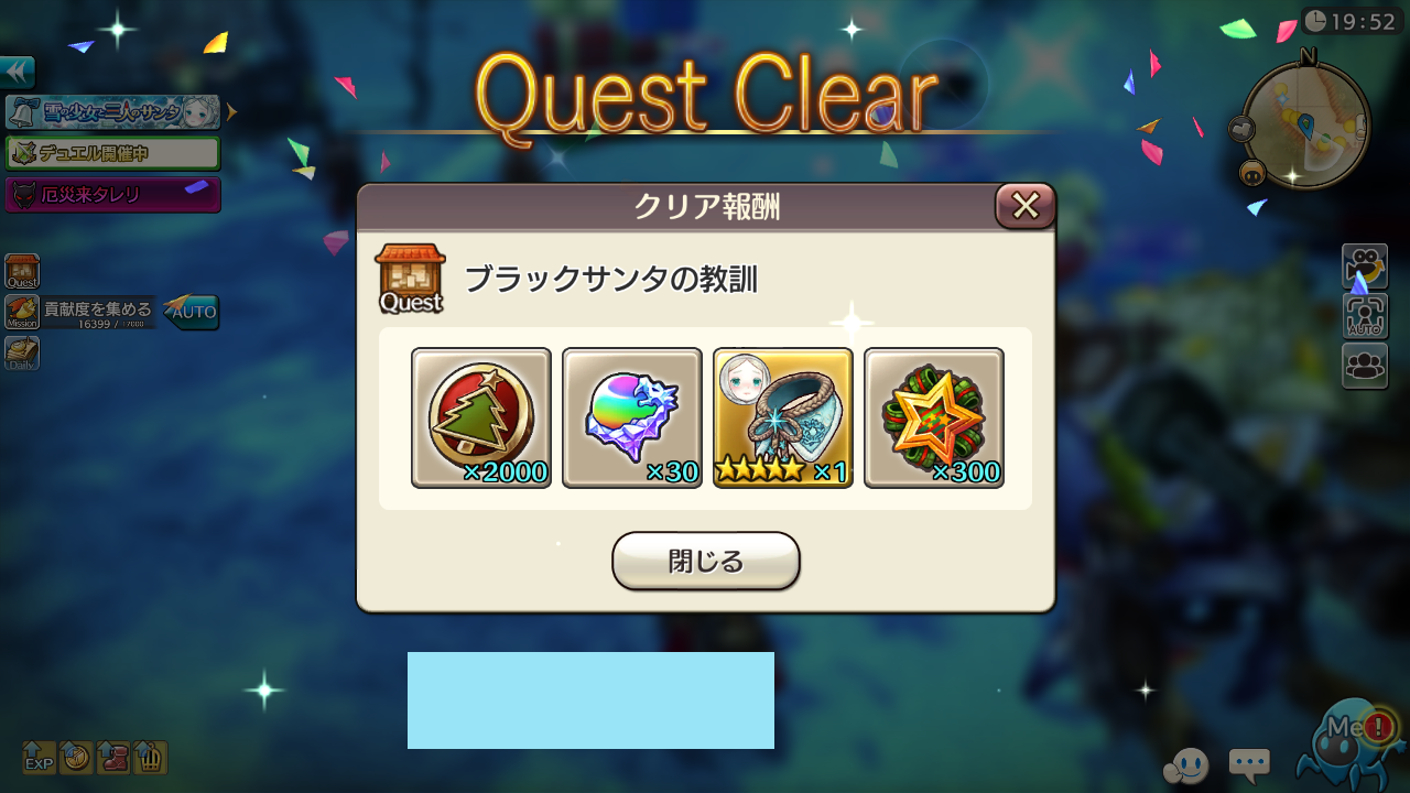クリア報酬:クリスマスチケット×1、ヴィンガのアニマ×10、クリスマスコイン×5000