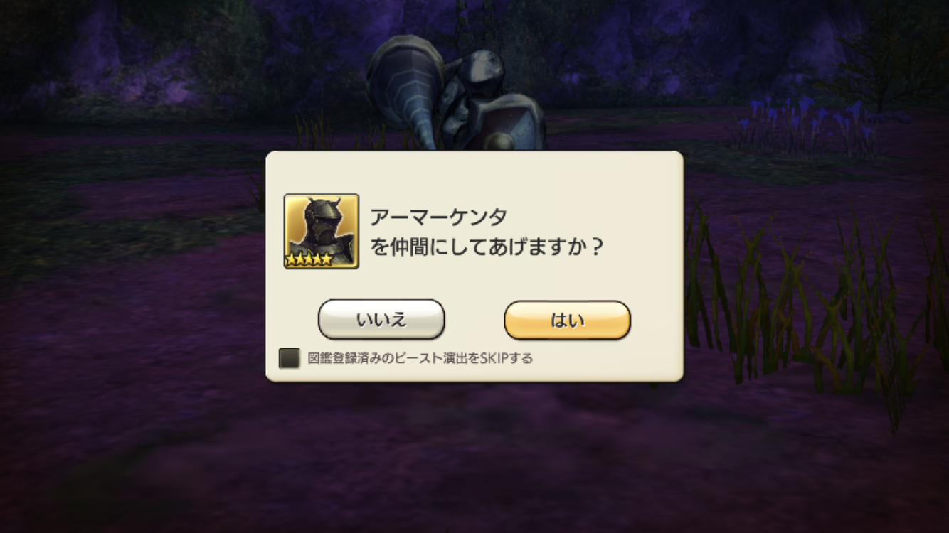 アイテム効果時間はまだまだ有り余ってるから、次にアニマが有り余ってるアーマーケンタ君をテイム出来るかなと思い狩ったところ