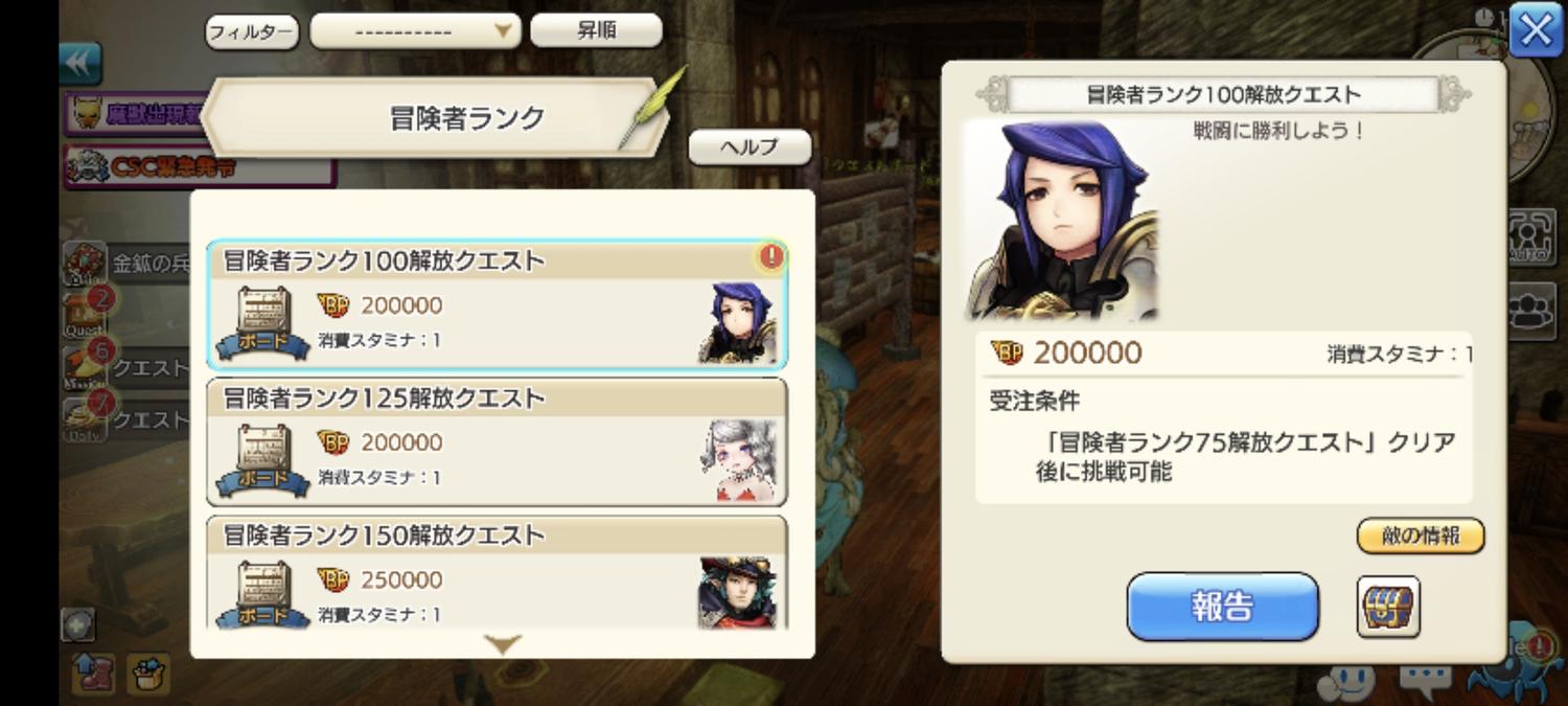 メインはPS版でスマホ版もやってますが、ようやくスマホ版の冒険者ランク100がクリアできました。