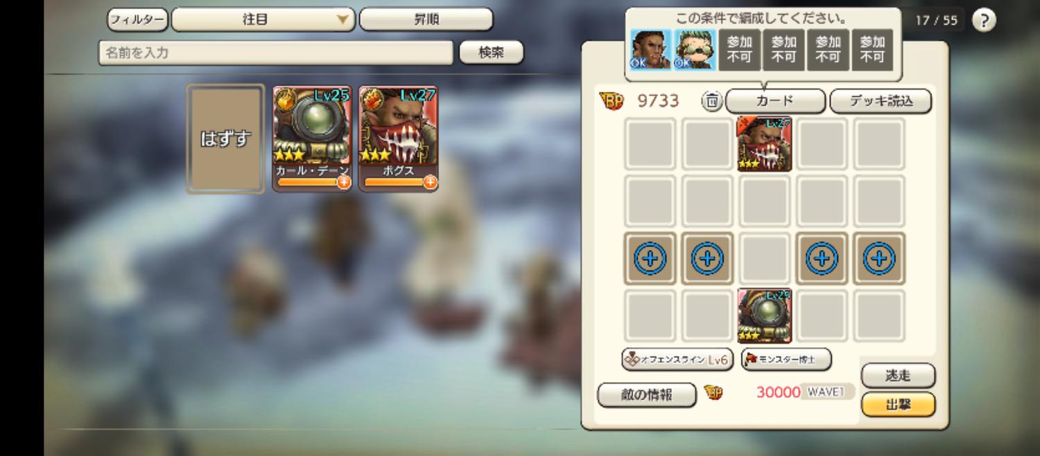 まずボグスとカール?だった気がするこの2人だけになると思っておらず進化も全然してませんでした。急いで進化させてもどちらともアニマが足らず星4には出来ず…