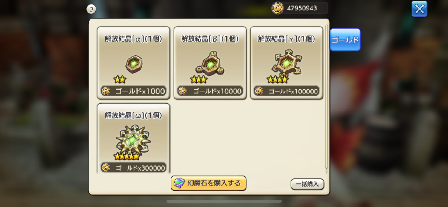 ふと、解放結晶買って補助装備開ければ銀金槌結構貰えるよねとなりました。