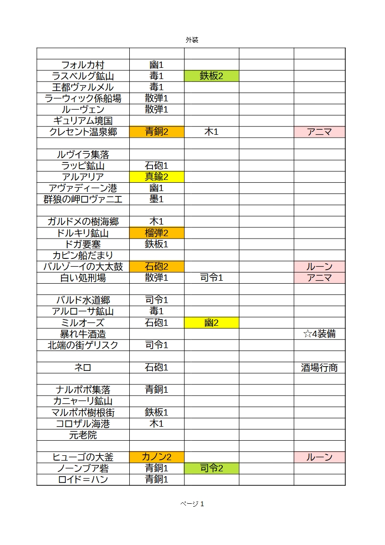 2024/01/23 04:52 公開 きょうの毒砲 雑日誌 2024/1/23 火曜日 ルーンはバルゾーイの大太鼓・ヒューゴの大釜 アニマはクレセント温泉郷(道具屋)・白い処刑場(道具屋) スクリーンショットは闇の行商のラインナップです ※表の数字はレアリティです数量ではありません※司令塔は全種類区別なく「司令」と表記※装飾品は表記してありません アン リンクをコピーしました 前の旅日誌 旅日誌一覧 次の旅日誌 コメント