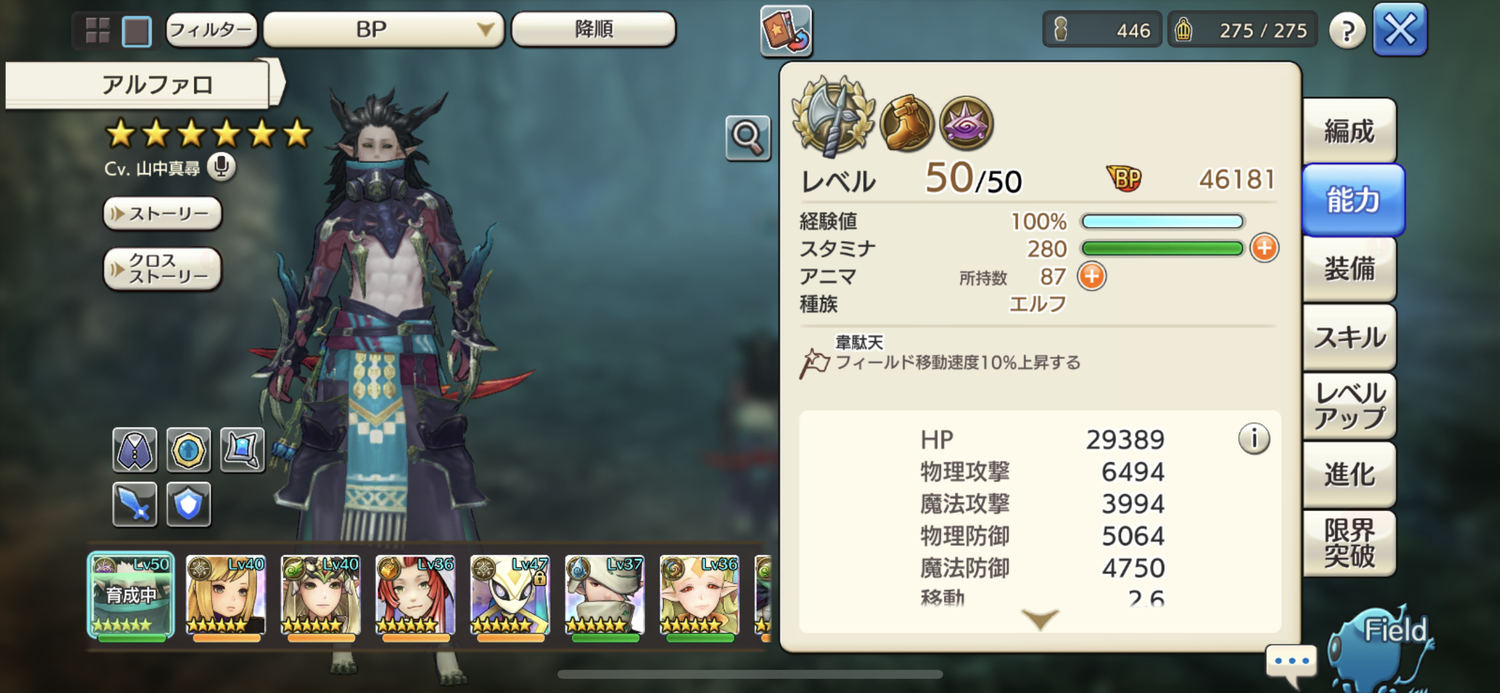 前々回くらいの旅日誌にアルファロのレベルが50になったらまた書きます、と書いた覚えがあるので報告しにきました!
