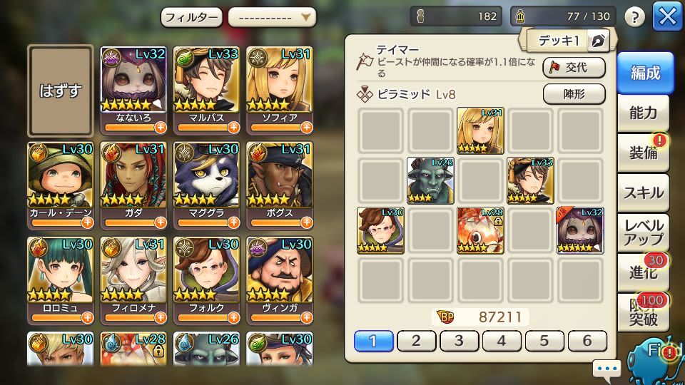 育ててるお気に入りのキャラ、