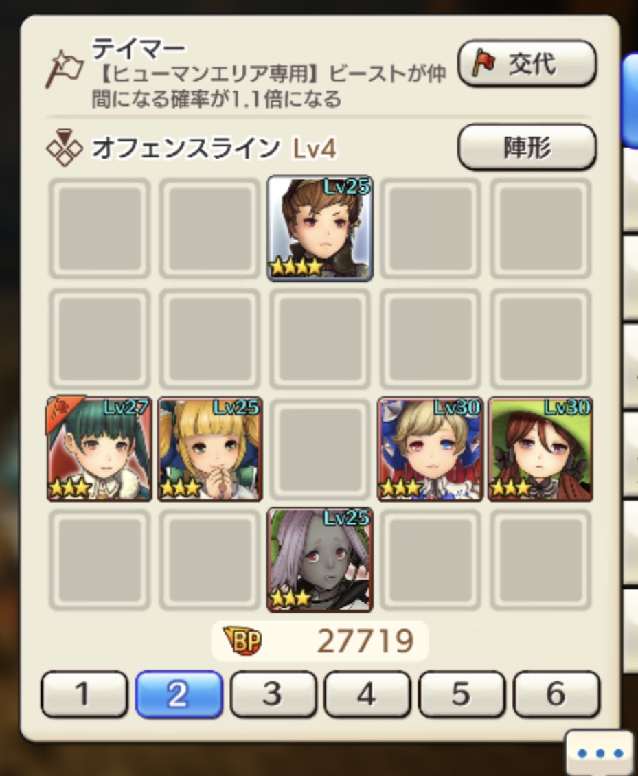 見づらいけど、3枚目のパーティだと安定はしたけど火力が足りなくて時間切れって感じだったのでパルヤンをモーリーに変えました!