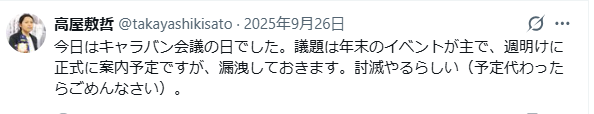 週明け(9/29月曜日)に(ファンミの開催が)正式に案内予定ですが、(ファンミの内容を?)漏洩しておきます。