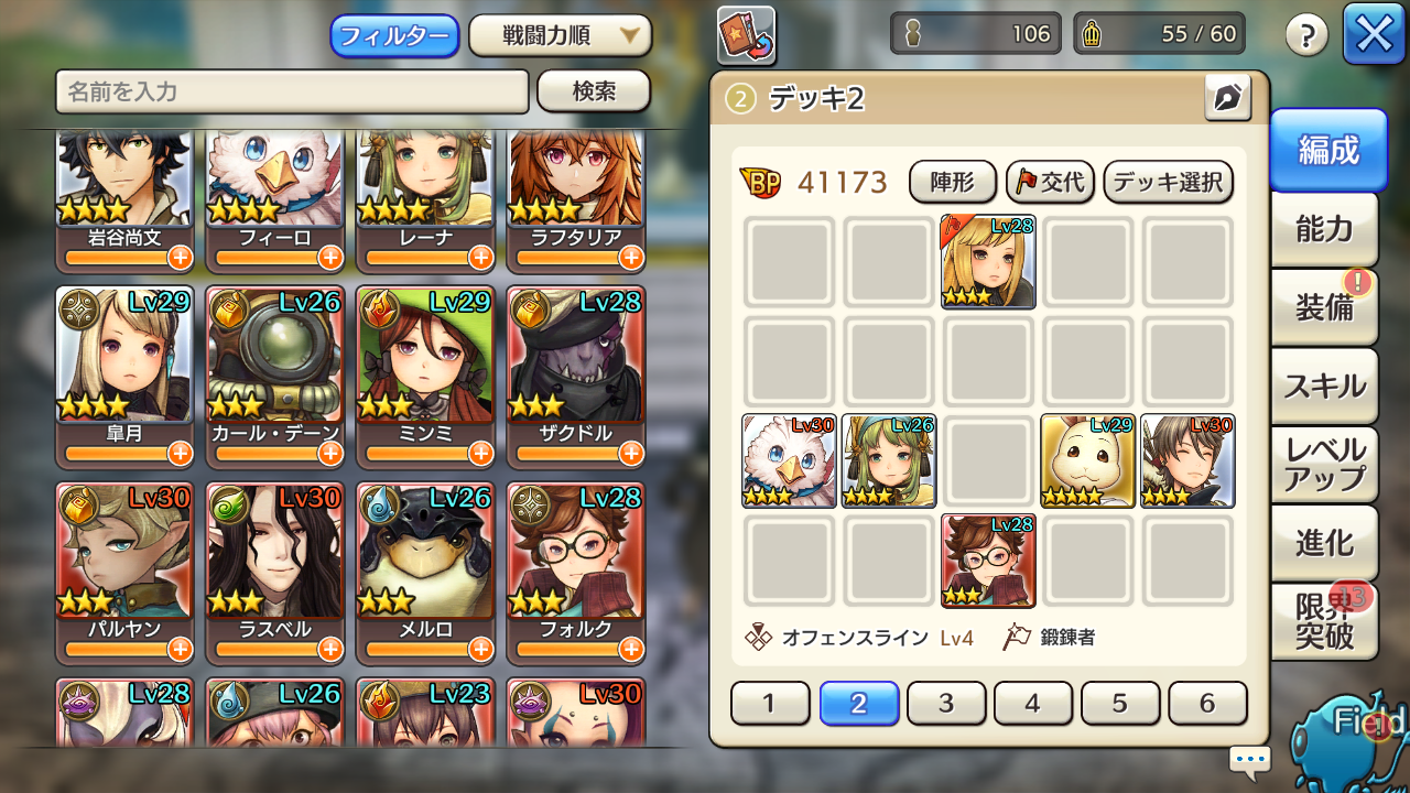 ピラミッドの2列目の配置、フィーロ、ラフタリアの職種の解釈を物理寄りと解釈していました、マジックナイトなのにラフタリアは剣、フィーロは羽で叩くを多用していたので、マジックでの底上げが有るのを失念していました。