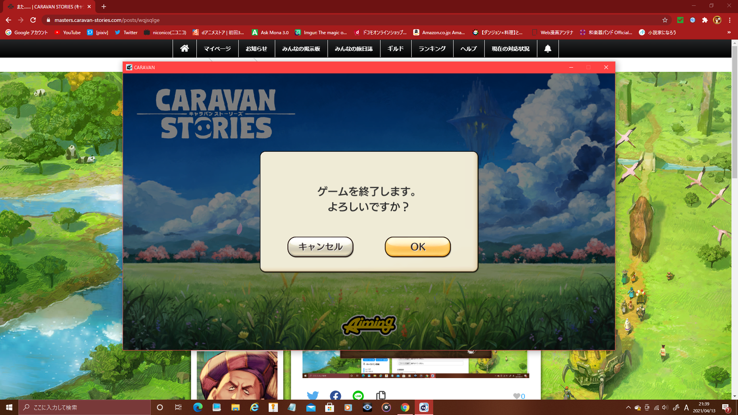 2021/04/13 21:37 公開 また…… スクリーンショット 今度は99%ですらない……ここから先に動きません。ログインすらさせてくれないのはいったい……。【追記】ようやくBGMが流れて画面が変わったと思ったらいきなり強制終了されそうになった……(;´Д`)ログインさせて…… めのうぐみ リンクをコピーしました 前の旅日誌 旅日誌一覧 次の旅日誌 コメント 1 アズ ID: 7d6vj398yamy おなじ症状です・・ 2021/04/13 21:46 2 めのうぐみ ID: 778ng8pnp9ye >> 1 つらいですよね……PCスペックもキャッシュも問題無いのにログインできない……せめてログボだけでも!と思ってPC諦めてスマホから入りました。 2021/04/13 22:13