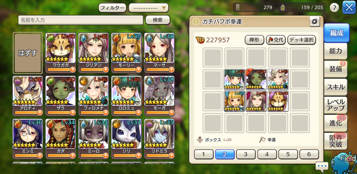 マーサ でデバフ解除と回復を厚めにしつつバフレス