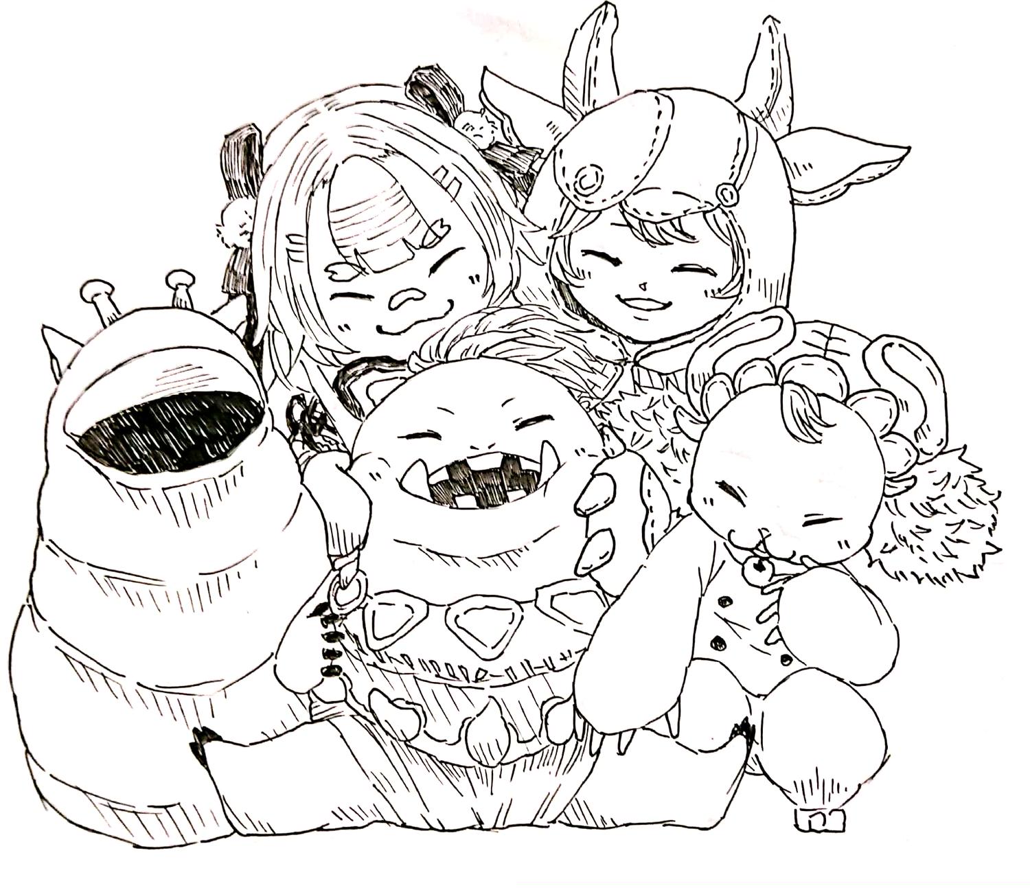 そのキャラ達の組み合わせ絶対可愛いじゃんかーと思ったのでイラストを描きました!私は次元の壁を越えてドラクートをプニプニ出来ないので、三人にプニプニしてもらいました。感触はどんな感じかな~爬虫類みたいな肌質かしら