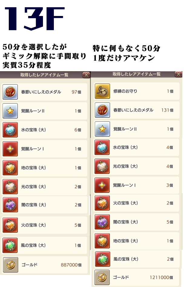 ⅠⅡ合計して二桁いかないなんて、これなら12Fで石殴りしてる方が良いわい。