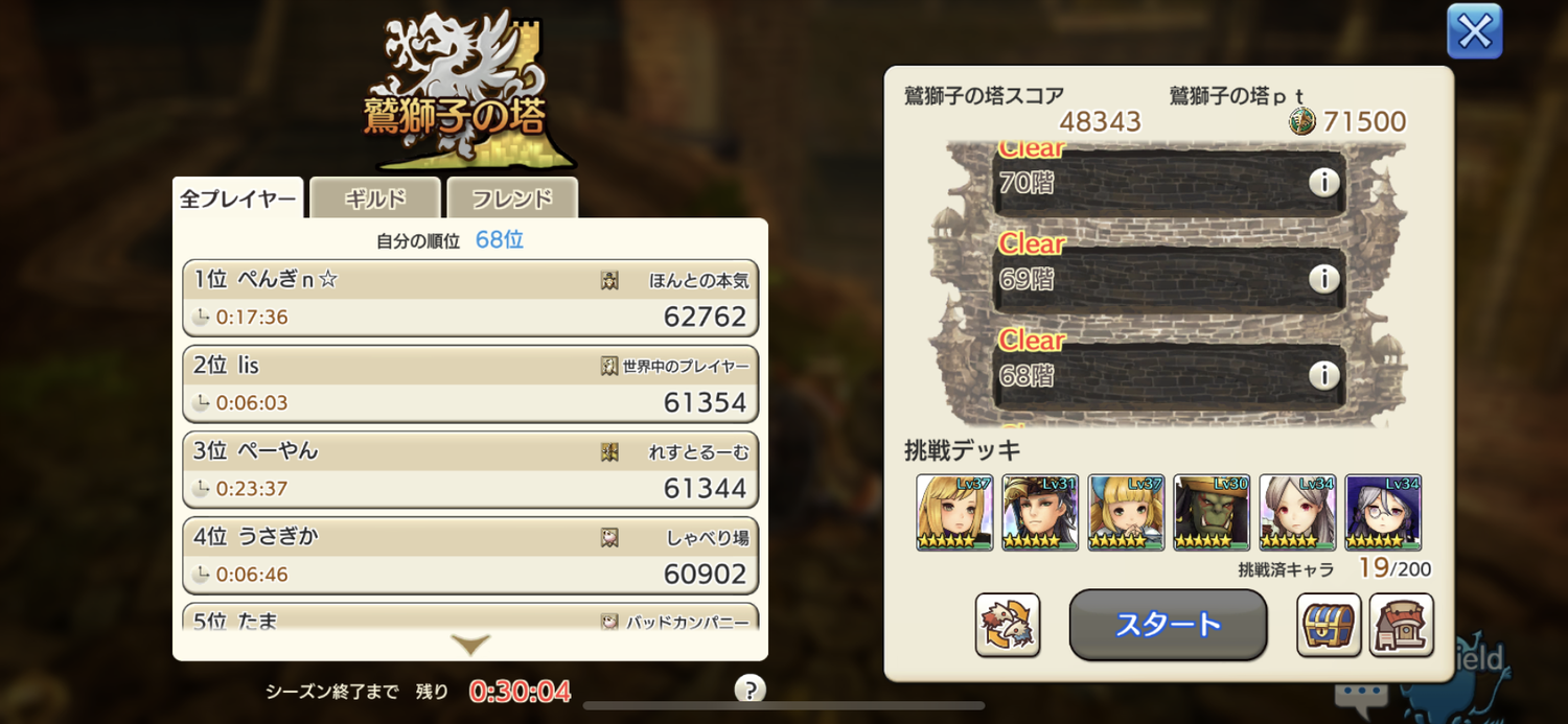 2019/11/17 23:34 公開 獅子塔 攻略 鷲獅子の塔 70階クリア〜ディラ強すぎ笑 DANGER リンクをコピーしました 前の旅日誌 旅日誌一覧 次の旅日誌 コメント 1 アドリアスと柴犬 ID: ahvtr3endptf 凄いヽ(*´∀`)ノ 2019/11/18 08:24