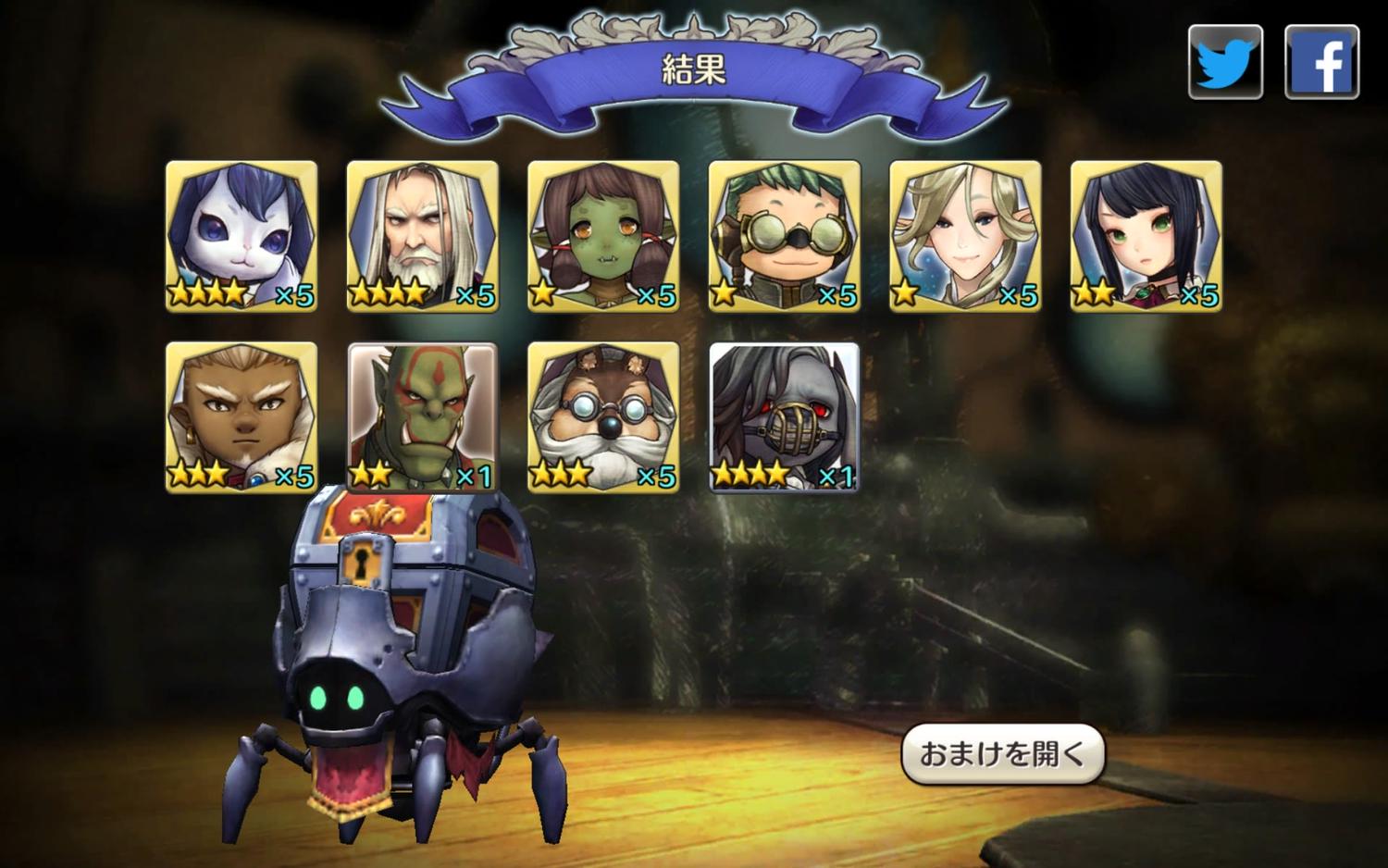 2019/04/28 10:56 公開 10連無料ガチャ結果1&2 雑日誌 初心者 運命の箱 皆さんこんにちは。GWもキャラストもエンジョイしてますでしょうか。今回はせっかくの無料ガチャが来てるのでどういう結果であれ公開しようと思い立ちました。今日で2日目ですが1日目と併せて画像を載せておきますので宜しけれご覧下さいませ~上→初日下→2日目 メメント リンクをコピーしました 前の旅日誌 旅日誌一覧 次の旅日誌 コメント 1 もんろ✿.*まろ ID: hxcp5g2g2qtc メメントさんこんにちはー(*'▽')♪無料ガチャ楽しいですよねwアニマが少しでも貯まるのはありがたいことです( *´艸`)ん??2枚目の写真に私の愛しのマルマたん武器出てるやーん( ゚Д゚)!!太鼓の武器が可愛いwまたログインしてる時を見計らってささ送りまーすwwではでは!! 2019/04/28 11:20 2 メメント ID: hezqgshp9784 >> 1 もんろさんどうもー!無料ガチャのおかげで強化しやすくなってホントに有難い限りですよね。そうなんですよ!でもマルマの武器出たものの本人がまだ仲間になってないので宝の持ち腐れ感半端ないです…O(:3 )~またお時間合いましたらお話出来るの楽しみにしてます笑 2019/04/28 22:47