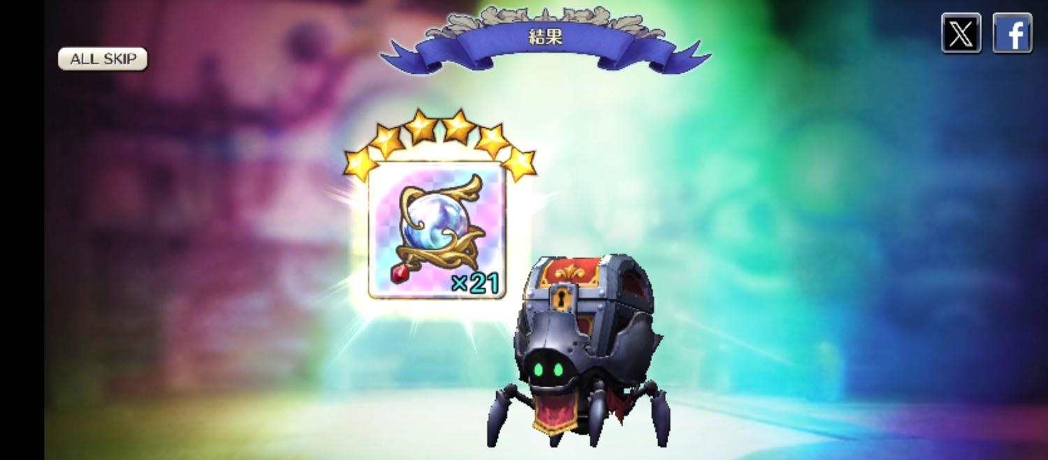 微妙な雰囲気になったので気を取り直してもう1回!!Σ(゚Д゚ υ) アリャなんとまた虹色背景!!流石に微妙なのはやめて欲しいなーとすこし心配しましたが結果、ビーストの輝宝玉×21個!!嬉しい!!ここまでガチャ運良かったことなくてめっちゃ嬉しかったです\(ˊᗜˋ)/ヤター