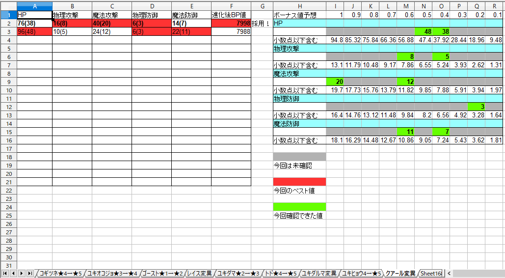 と言うわけで今日は趣味(無駄)の極み、先日ようやく終わったクアールの変異挑戦&比較選別です。イベント期間中に間に合って良かった…。