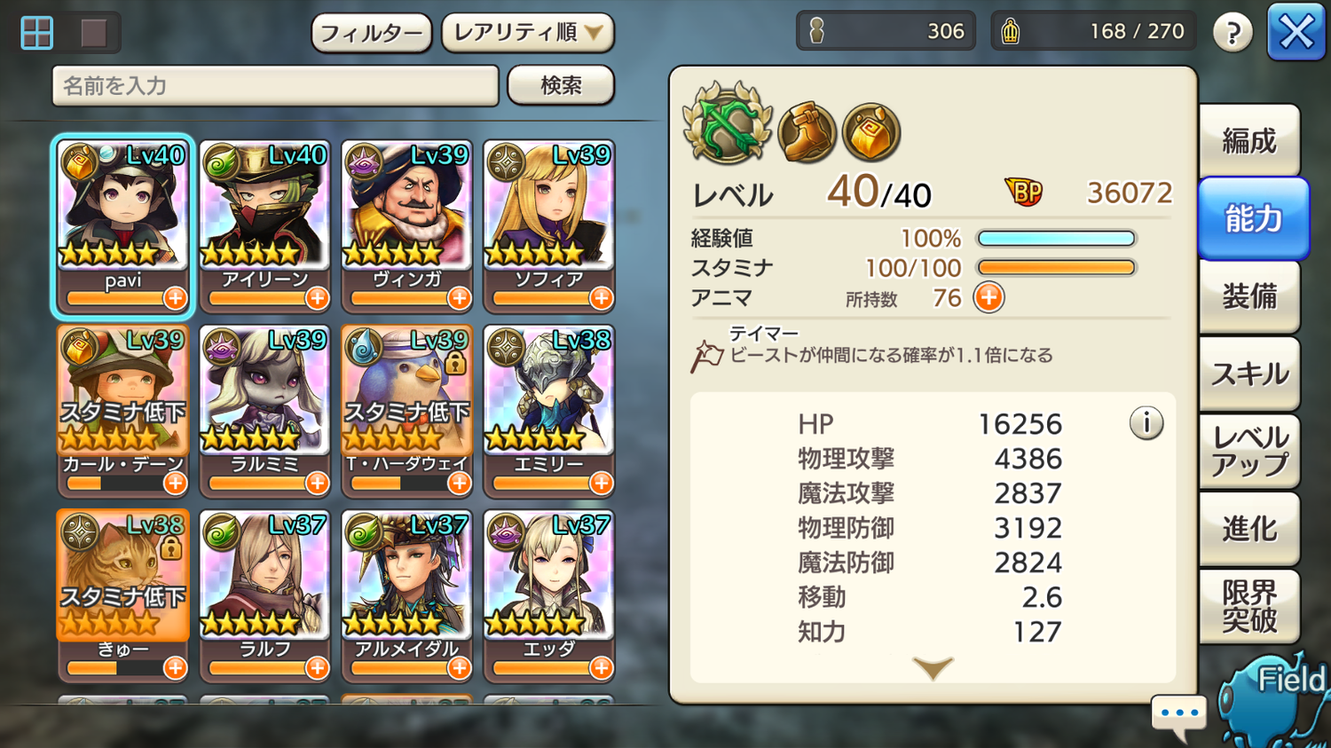 これでは現状のゲーム内のキャラ数が増えてしまっているので、手間が掛り過ぎる印象が強いです。エニグマのPT編成画面もそうでしたが、なるべく無駄な楽しくない時間は省略できるようにしてもらいたい。