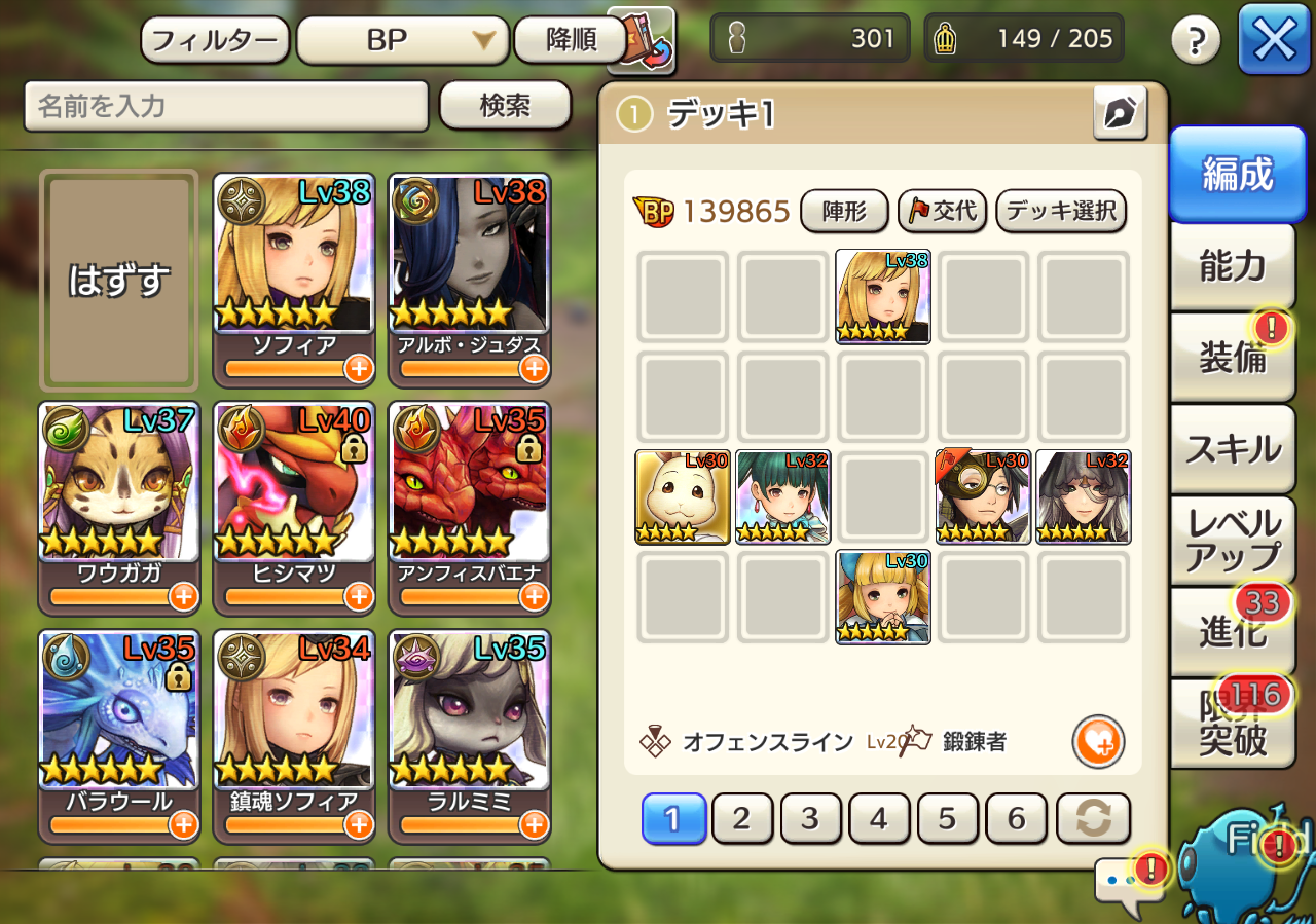 1.ソフィア30282BP 両手星6武器覚醒値27、アクセ:魔防増大10%、魔法耐性4.5%、NS:LV4、ASLV5、知力LV5、ダメージ減少88%