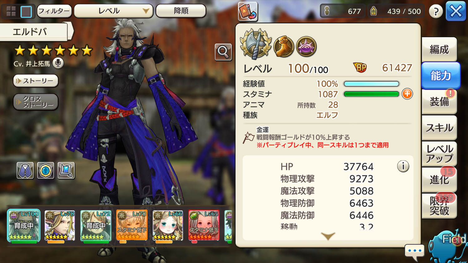 有償パスによって経験値やゴールドも増えやすくなり、奈落3回スキップで経験値等をもらい、有償パスエリアにてEコラを毎日倒し続け、1回の戦闘を短くするため育成をしたり、アロティの占いで経験値が出ることを願ったり、酒場や回復薬でスタミナを増やしたり、スタミナに余裕があってアロティ占いの経験値が出た時に短時間酒場の奥で戦ったり、デュエルで勝つと貰える宝箱や冒険者ランクなどでもらえる経験値オーブを使ったり、EコラでPT募集をして共に戦い、助けていただいたりと…。