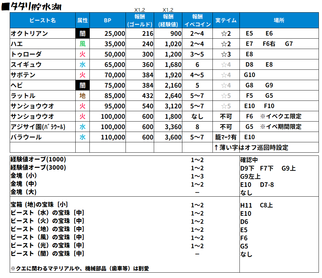 ・報酬ゴールド×1.2倍。 報酬経験値 1.2倍時の値です。
