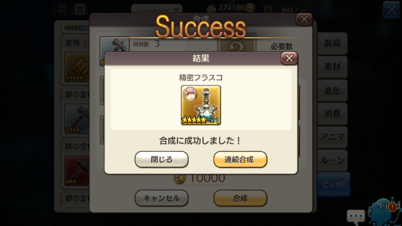 英雄試練袋とかから出る銀色金槌で、コツコツ合成してますが…