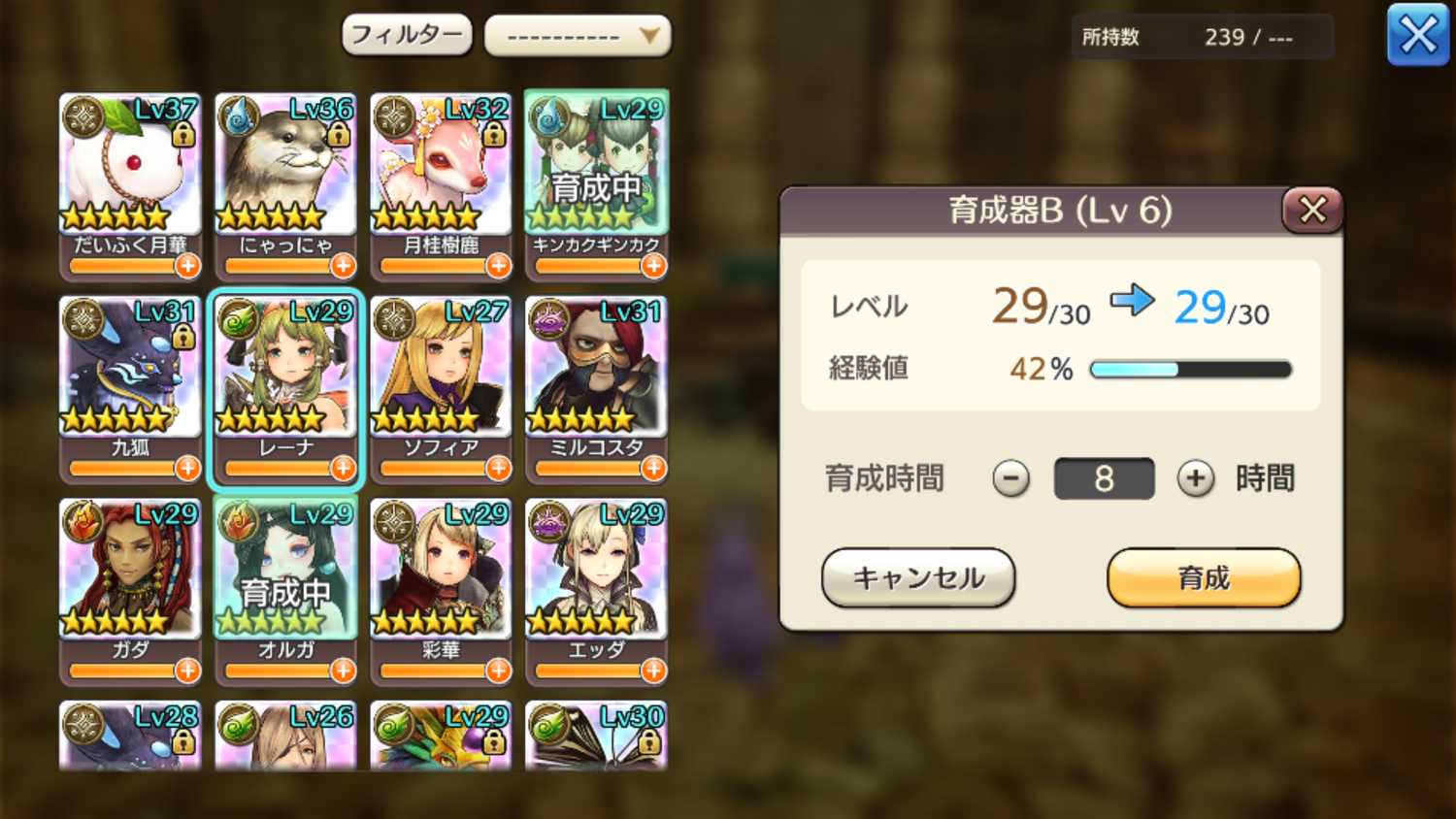 育成時間12時間?レベル20→29?)この後フリーズして動かなくなりましたスマホは動いたのでスクショ(笑)