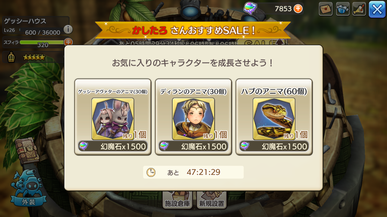 タタリスはまだ本気育成するつもりが無いので、パス。