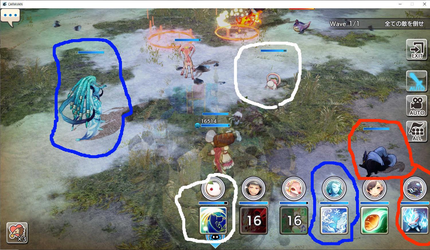 4)手動でアクティブスキル発動、若しくは移動させてやると、動き出す。