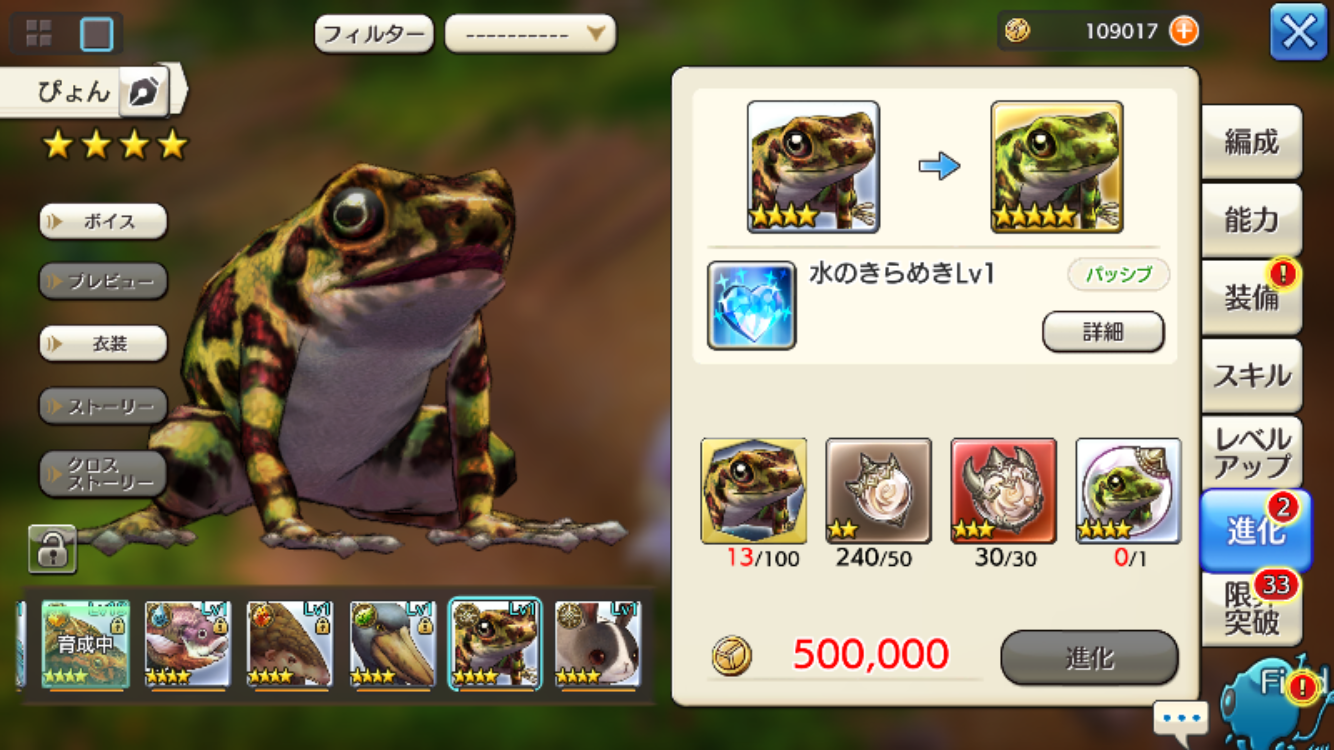 ★5の進化宝珠をもらうべく、自動巡回はイシカワガエル★5に変更です