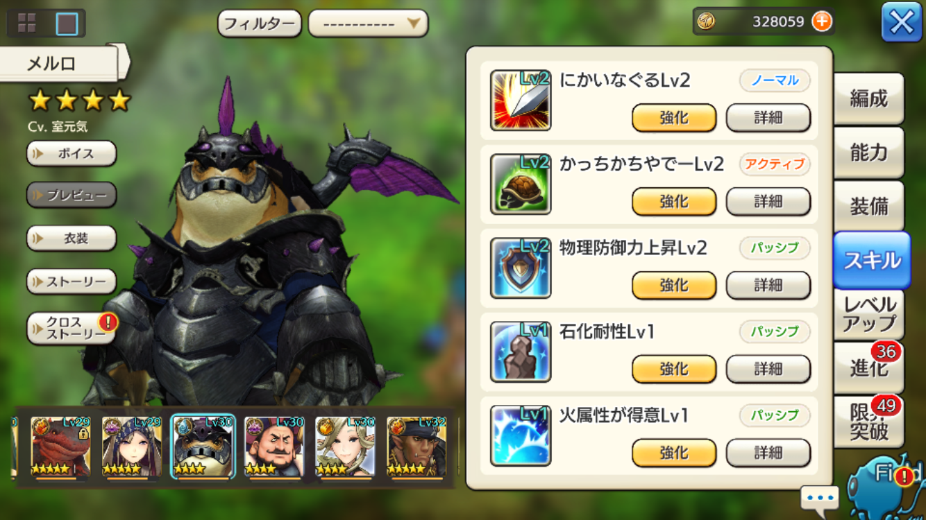 スキルはNS.AS.防御アップをそれぞれレベル2